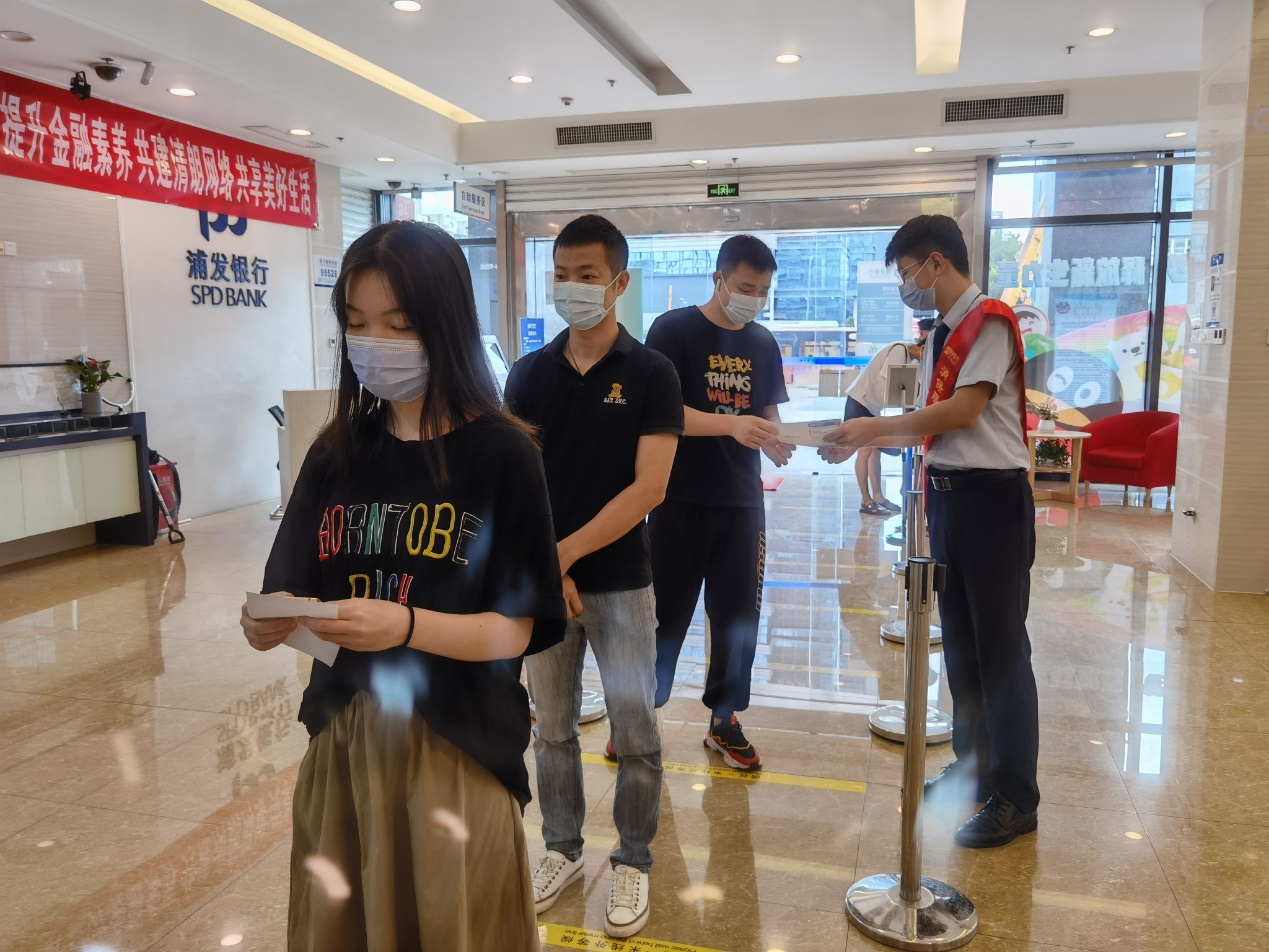近期,全國(guó)疫情防控形勢(shì)依然嚴(yán)峻,浦發(fā)銀行深圳科苑按照上級(jí)要求,做好防疫相關(guān)工作,在每一位市民進(jìn)入網(wǎng)點(diǎn)之前,均安排專人負(fù)責(zé)測(cè)量體溫,引導(dǎo)客戶出示行程碼和健康碼并要求戴好口罩。為提醒市民防疫,該網(wǎng)點(diǎn)還提供了免洗洗手液、一次性口罩等防疫物品。在紀(jì)念幣兌換排隊(duì)等候區(qū),該網(wǎng)點(diǎn)設(shè)立專屬通道,張貼一米等候線,引導(dǎo)市民有序完成兌換,避免人群扎堆?,F(xiàn)場(chǎng)秩序井然,多位市民表示在節(jié)假日期間拿到紀(jì)念幣非常滿意。