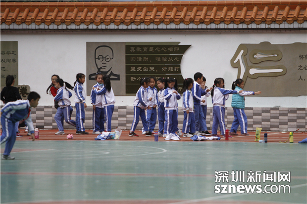 中放學(xué)后,羅湖螺嶺外國語實驗學(xué)校二部不少學(xué)生聚集在操場上,等待父母接送回家