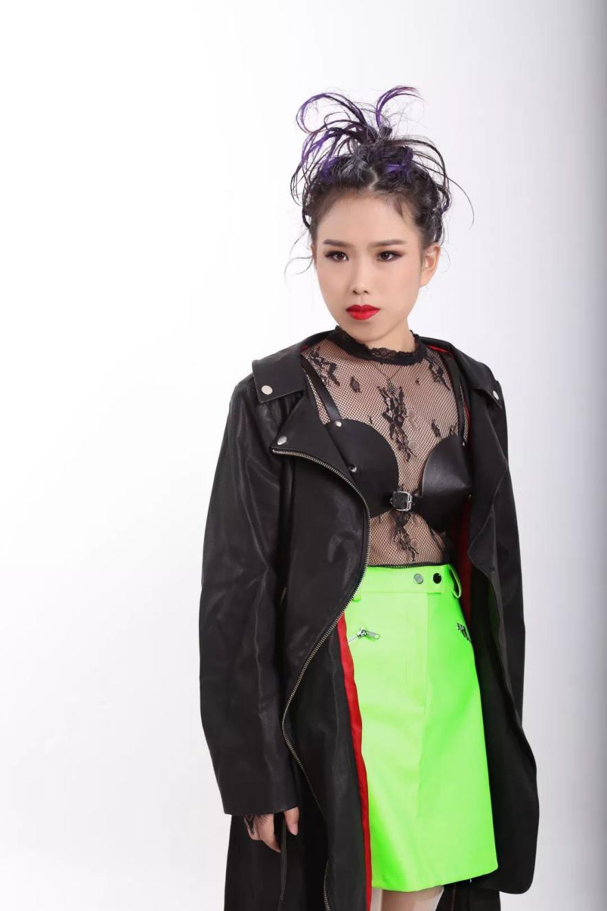 Nana長(zhǎng)得特別冷艷的,內(nèi)心像藏了一頭野獸,如果穿日韓風(fēng)的話會(huì)埋沒了她的氣場(chǎng)。這次給她選擇了現(xiàn)在國(guó)際最流行的PVC靴子,搭配了熒光色的短裙,她完全可以撐起來。