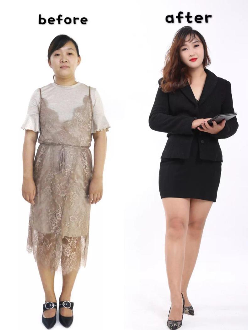 她 是一位已婚少女(fu),素面朝天上班族,養(yǎng)生派,天天在辦公室給同事泡茶喝,日常打扮比較斯文(也就是保守),恨不得夏天還穿高領(lǐng)毛衣那種。改造前,一直抓著小編手說,“我哪里都不露!”