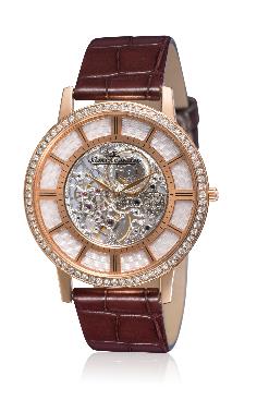 積家 Master Ultra Thin Squelette超薄大師系列鏤空腕表鑲鉆款明確地將璀璨光澤視為設計主線。以不同方式鐫刻和裝飾一系列不同的腕表部件熠熠生輝,每個時區(qū)皆裝飾一片手工雕刻的天然珍珠母貝,質感精致細膩。積家擁有悠久的超薄腕表制作傳統(tǒng),其歷史可追溯至1907年。大工坊選擇將鏤空工藝、雕刻工藝、琺瑯工藝及珠寶鑲嵌等超凡的手工技藝與超薄制表技術相互結合,極具創(chuàng)意。