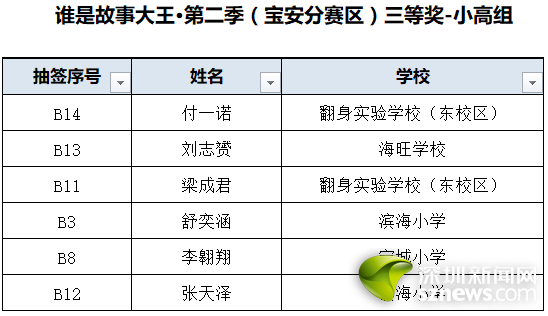誰(shuí)是故事大王·第二季(寶安分賽區(qū))獲獎(jiǎng)名單: