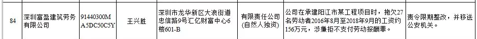 省人社廳近日公布2019年第一批用人單位重大勞動保障違法行為名單