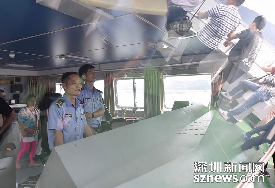 海監(jiān)船上,參觀市民饒有興致地傾聽(tīng)了海監(jiān)漁政執(zhí)法人員關(guān)于我市海洋資源、海島狀況以及海洋執(zhí)法工作的介紹,觀看了深圳灣禁漁區(qū)執(zhí)法管理記錄片,并暢游了我市西部海域海島。