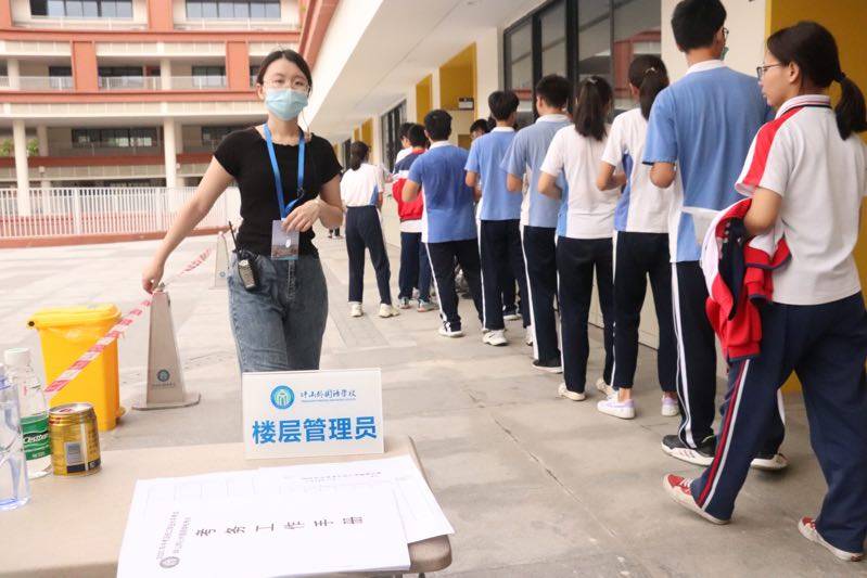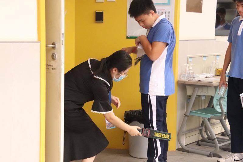 坪山同心外國語學校的考生進入教室。(記者焦子宇耿超逸)