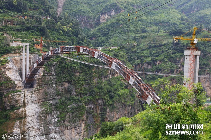2018年5月30日,云南昭通,鸚哥大橋完成最后一段35米引橋現(xiàn)澆箱梁作業(yè),標(biāo)志著“鸚哥溜索改橋”主體工程完工,進(jìn)入最后階段的橋面鋪裝和防護(hù)欄施工,預(yù)計(jì)6月底建成通車。