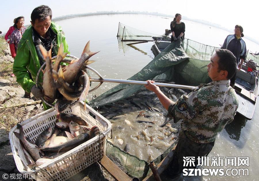 深圳新聞網(wǎng)訊 江蘇揚州,邗江區(qū)公道鎮(zhèn)南湖村南湖水域,專業(yè)捕撈隊人員已集結(jié)到胡登強養(yǎng)殖戶家魚塘進行捕撈作業(yè)。據(jù)捕撈隊員沈昌田介紹,近期隨氣溫轉(zhuǎn)冷,魚的銷量增加,水產(chǎn)養(yǎng)殖戶紛紛捕魚上市,為趕在上午10時將魚運到水產(chǎn)批發(fā)市場銷售,專業(yè)捕撈隊員們天不亮就起床,下河塘布圍網(wǎng)、收網(wǎng)撈魚、過秤裝車。一周捕撈作業(yè)有三四次之多,一次捕撈多達上萬斤魚。公道鎮(zhèn)有水面灘涂6.5萬畝,是魚、蝦、蟹、等水產(chǎn)品養(yǎng)殖的理想場所。