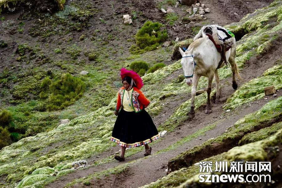 深圳新聞網訊 秘魯彩虹山所在的山坳里,有一個西班牙語名叫Cusipata chillahuani的少數民族,他們世世代代生活于深山之中,環(huán)境嚴酷。他們吃苦耐勞,原來大多從事畜牧業(yè),飼養(yǎng)羊駝、綿羊和馬,鮮與外界接觸。李仁奇攝