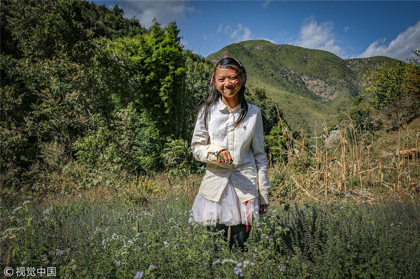 2018年11月,云南昆明。平時,張曉梅家主要以采藥、采蘑菇、放羊為生,也種植一些農作物和蔬菜。