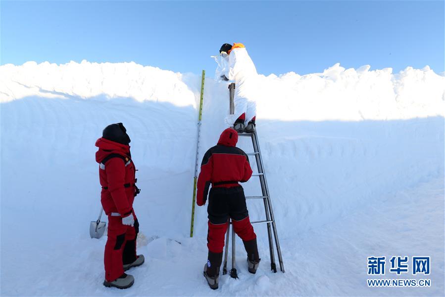 12月20日凌晨,科考隊員進(jìn)行本次科考中的首次雪坑樣品采集。