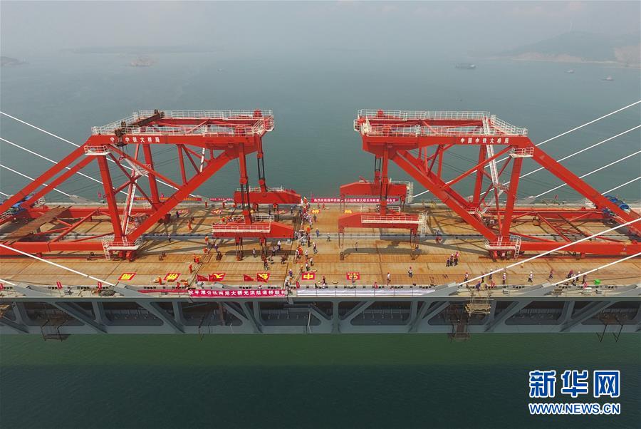 6月5日,福平鐵路平潭海峽公鐵兩用大橋元洪航道橋主橋正式合龍。 新華社記者 林善傳 攝