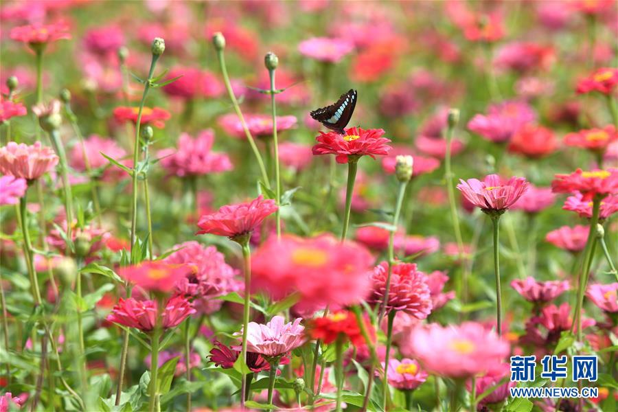 10月9日,一只蝴蝶在四季花海城市公園花叢中。 秋日時節(jié),位于安徽省合肥市的四季花海城市公園花香四溢,色彩繽紛,成為游客和市民休閑游玩的好去處。 新華社記者 張端 攝