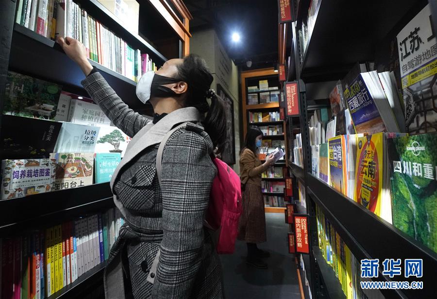 3月22日,顧客在上海市中山北路上的一家書店內(nèi)選購圖書。近期,上海市的一些實(shí)體書店陸續(xù)恢復(fù)開放。為做好疫情防控工作,目前進(jìn)入書店需要測(cè)量體溫,書店也縮短了運(yùn)營(yíng)時(shí)間。新華社記者陳飛攝