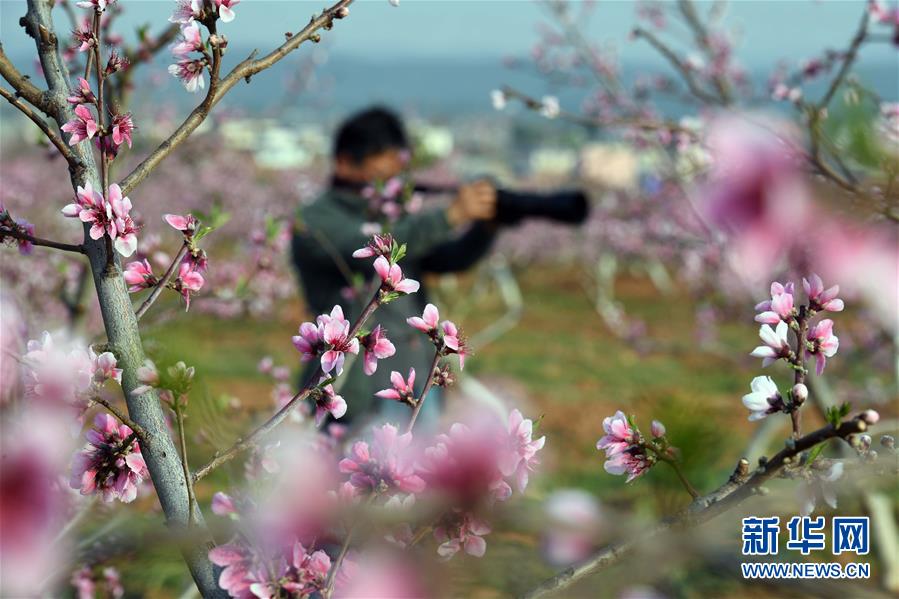 3月22日,游客在云南省曲靖市沾益區(qū)盤江鎮(zhèn)河西村的果園里拍攝桃花。春季里,云南省曲靖市沾益區(qū)鄉(xiāng)村果園里的桃花梨花競相綻放,景色秀美,吸引游人前來觀光。新華社記者楊宗友攝