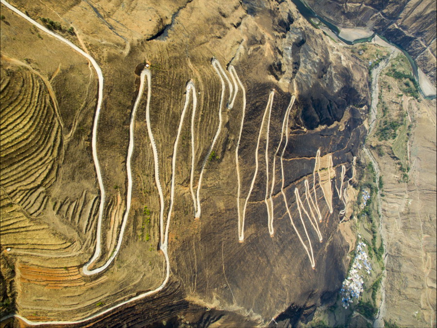 這是“怒江72拐”,該處位于西藏自治區(qū)昌都市八宿縣境內(nèi),是川藏線上一段艱險(xiǎn)與美景并存的山路(10月23日無人機(jī)拍攝)。全長(zhǎng)2000多公里的川藏公路,從成都開始,一路向西到終點(diǎn)拉薩,在橫斷山脈、喜馬拉雅山脈和念青唐古拉山脈間蜿蜒盤旋,因海拔落差大,彎道眾多,形成天路奇觀。川藏公路1954年12月25日通車,65年來,國(guó)家對(duì)川藏公路進(jìn)行了大規(guī)模改造升級(jí),建設(shè)了眾多橋梁和隧道,行車條件得到明顯改善。新華社記者江宏景攝