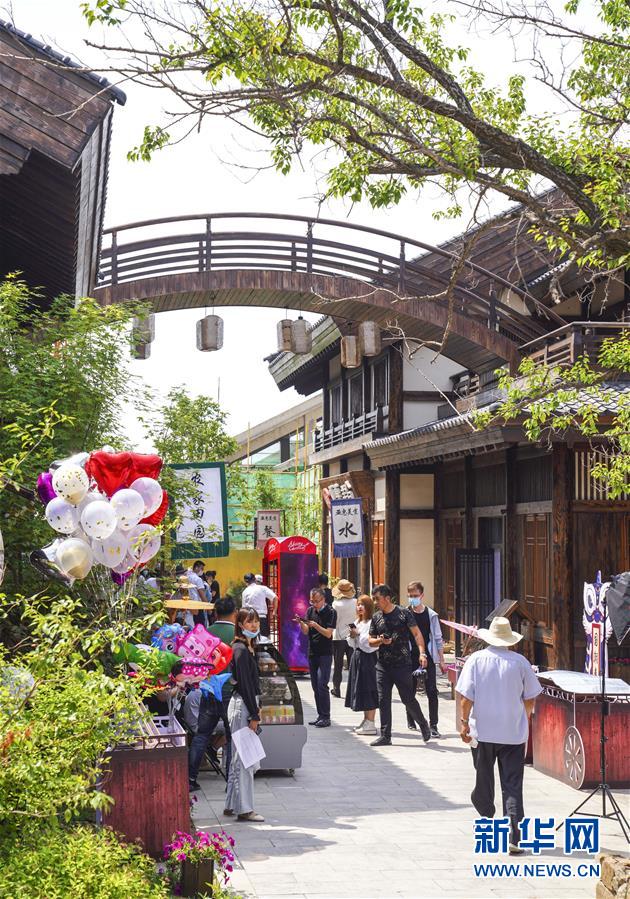 6月13日,市民在長(zhǎng)春市世茂蓮花山小鎮(zhèn)寬厚里商街參觀游覽。當(dāng)日是“文化和自然遺產(chǎn)日”。吉林長(zhǎng)春首屆蓮花山消夏生活節(jié)在世茂蓮花山小鎮(zhèn)舉行?;顒?dòng)將非遺展示與假日消暑休閑相結(jié)合,讓游人在“古色古香”的油紙傘巷中品傳統(tǒng)文化魅力,享夏日休閑愜意。新華社記者 許暢 攝