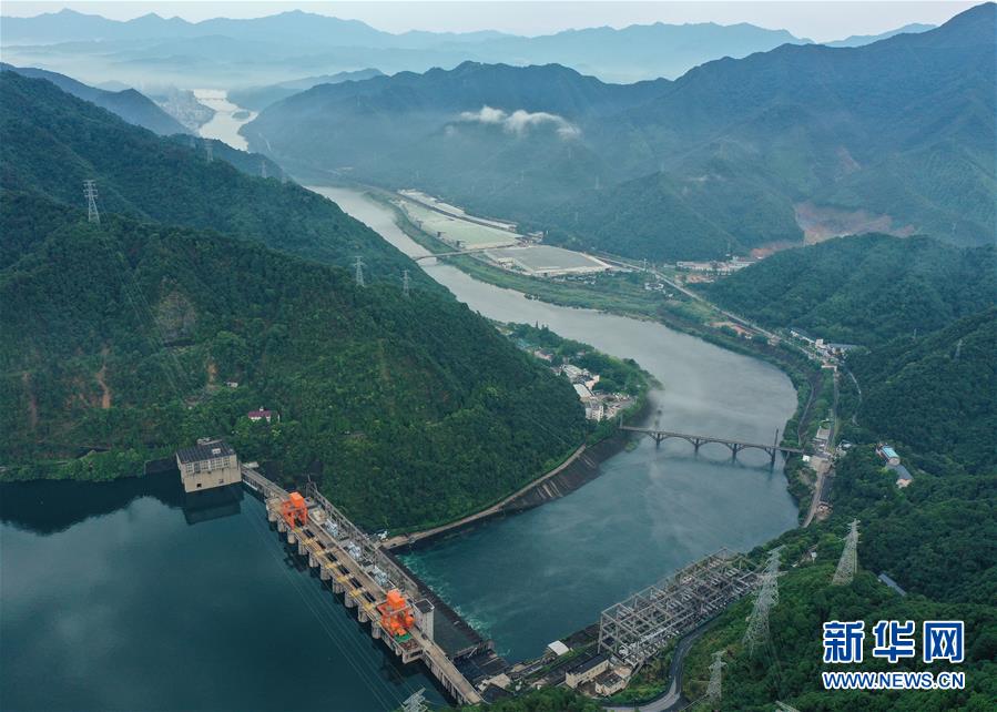 7月6日拍攝的新安江水庫(無人機照片)。受連續(xù)強降雨影響,位于浙江建德的新安江水庫水位持續(xù)上漲。據(jù)浙江省水利廳發(fā)布的數(shù)據(jù),截至7月6日14時,水庫水位上漲至106.54米,超汛限水位0.04米,且仍在上漲中。為確保水庫防洪安全、合理利用水資源,新安江水庫預(yù)計于7月7日開啟泄洪閘泄洪。新華社記者翁忻旸攝