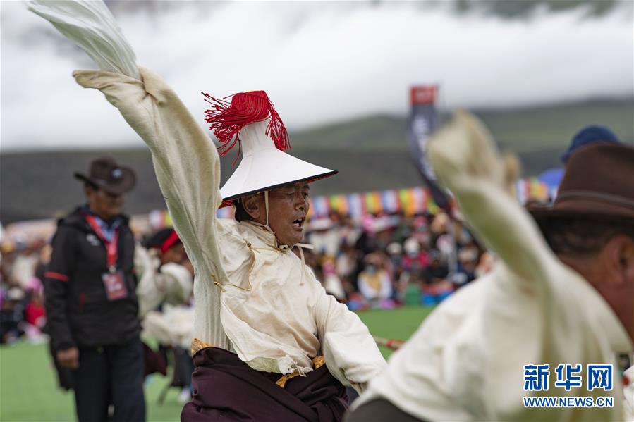 8月10日,當(dāng)雄縣牧民在為參加拔河比賽的隊友加油助威。新華社記者普布扎西攝。