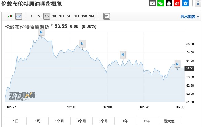 布倫特原油期貨無漲跌,報(bào)53.55美元/桶。