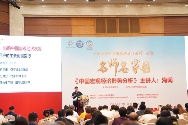 據(jù)介紹,總會(huì)依托民政部社會(huì)組織服務(wù)中心授予的“全國社會(huì)組織教育培訓(xùn)(深圳)基地”設(shè)立“名師名家講學(xué)堂”,設(shè)立兩年多來先后邀請了王石、馬蔚華、馮侖、唐杰、印順等眾多大咖“頭腦風(fēng)暴”、分享智慧,得到社會(huì)各界的普遍認(rèn)可。今年以來,作為改革排頭兵的深圳再次被委以重任,確定為中國特色社會(huì)主義先行示范區(qū),深圳面臨著面臨著全新的挑戰(zhàn)和巨大的機(jī)遇??倳?huì)作為“協(xié)會(huì)的協(xié)會(huì)”,深諳深圳社會(huì)組織及企業(yè)的迫切需求,為此講學(xué)堂特別邀請深圳匯豐商學(xué)院創(chuàng)院院長海聞教授為大家分析中國的宏觀經(jīng)濟(jì)形勢,幫助深圳企業(yè)家登高望遠(yuǎn)、把握形勢、尋找方法、積極“迎戰(zhàn)”,增強(qiáng)他們憂患意識(shí)的同時(shí)也增強(qiáng)其克服困難的信心。