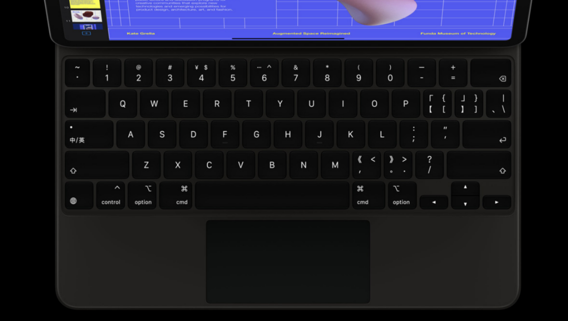 此外,Magic Keyboard自帶的 USB-C接口還能進(jìn)行直通充電。同時(shí),懸浮式支架設(shè)計(jì),可以讓用戶隨意調(diào)節(jié)觀看角度,新版的iPad Pro就像是一塊小尺寸的辦公神器。