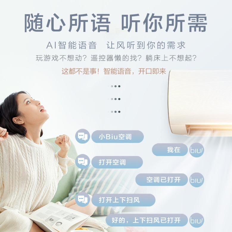 此外,小Biu空調Max搭載了AI智能語音控制技術,你只需要對它說“小Biu空調”將其喚醒,就能實現(xiàn)開機關機、模式切換、調節(jié)溫度等操作,實現(xiàn)了真正的智能語音操控。同時,小Biu空調Max采用行業(yè)一流的海立壓縮機,并具有高溫自清潔、APP遠程控制、急速冷暖等亮點功能,提供整機6年、壓縮機10年保修的服務。