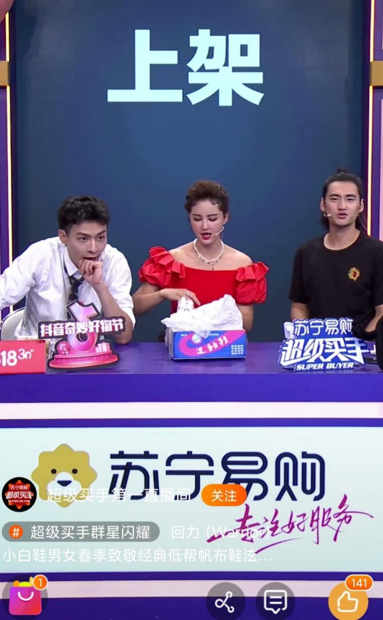 超級(jí)秀舞臺(tái)與“超級(jí)買手”直播間首度實(shí)現(xiàn)連麥,流量“打穿”效果明顯。在蘇寧易購與抖音雙平臺(tái)的連播中,直播間全場補(bǔ)貨76次,群星買手人均喜提39次秒空。