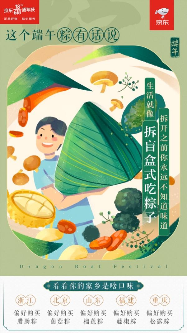 此外,京東自有品牌京東京造原創(chuàng)設(shè)計(jì)產(chǎn)出的一款國(guó)潮包裝的粽子禮盒,在這個(gè)端午節(jié)也受到了消費(fèi)者的極大歡迎。產(chǎn)品包裝上,傳統(tǒng)龍舟競(jìng)逐插畫(huà)所演繹出的國(guó)潮美學(xué),正呼應(yīng)了傳統(tǒng)風(fēng)尚的迅速崛起,而別出心裁的原創(chuàng)禮盒設(shè)計(jì),則實(shí)現(xiàn)了精準(zhǔn)創(chuàng)新,滿足了更年輕的消費(fèi)者個(gè)性。
