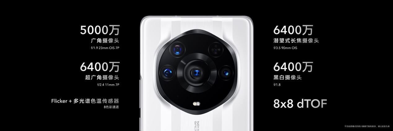 影像方面,榮耀Magic3至臻版打破手機鏡頭天花板,突破性地采用了多主攝設(shè)計。在與榮耀 Magic3 Pro采用同樣的業(yè)界領(lǐng)先6400萬潛望式長焦鏡頭和6400萬黑白鏡頭基礎(chǔ)上,榮耀 Magic3至臻版將5000萬像素超大底主攝升級為索尼 IMX700,傳感器尺寸達到1/1.28英寸,擁有業(yè)界領(lǐng)先的感光度(ISO),成像解析力、暗光拍攝能力更強。而超廣角微距鏡頭,也從1300萬像素,升級為業(yè)界領(lǐng)先的6400萬像素126°超大廣角微距鏡頭,能完美呈現(xiàn)廣闊空間中整個建筑、地標(biāo),亦能捕捉2.5cm近距離下的微小細節(jié),提供肉眼無法看到的創(chuàng)意視角。多主攝計算攝影,實現(xiàn)多焦段高清影像。