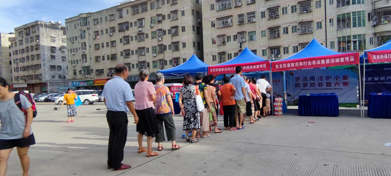9月23日下午,寶龍街道在下井一村開展打擊非法集資、打擊非法傳銷、打擊侵犯知識產(chǎn)權(quán)與制售假冒偽劣商品進社區(qū)宣傳活動。