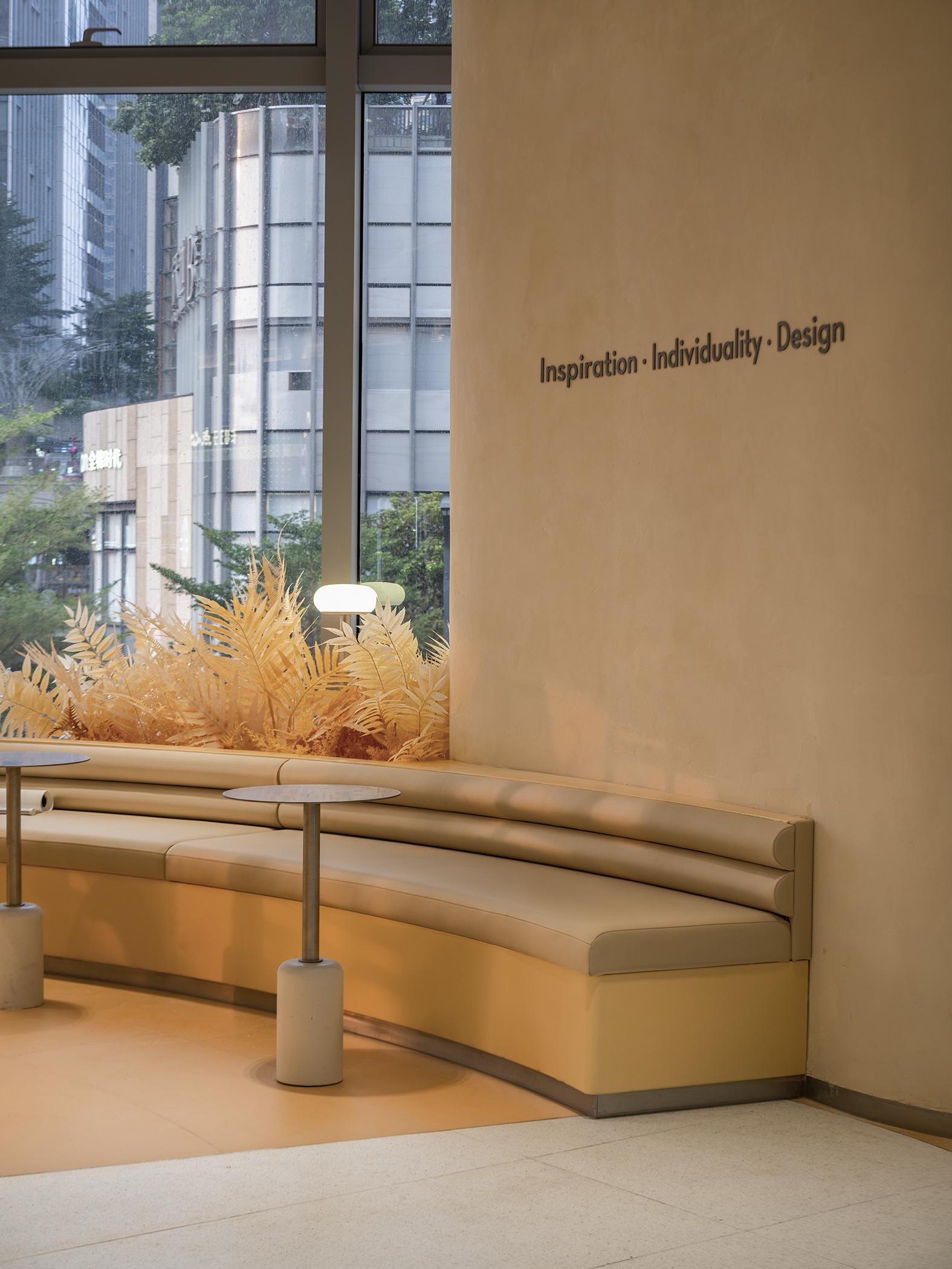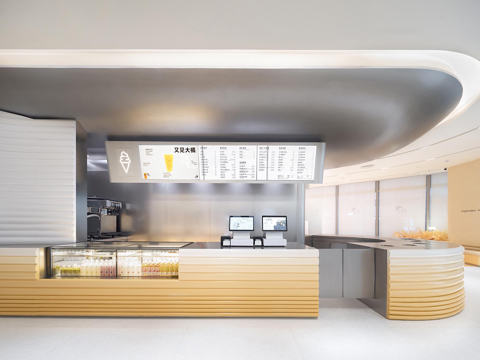 走進(jìn)喜茶深圳壹方天地C區(qū)店,通透的全落地玻璃外立面,讓藍(lán)天白云似乎觸手可及;渾然一體的圓潤吧臺(tái),讓整個(gè)空間更為純粹;橙白漸變的門店主色調(diào),為深圳增添了一份溫柔的秋意。門店整體布局采用了圍合式布局,圍繞中心的水吧,從外立面到客區(qū)桌椅的布置都以圓弧形態(tài)進(jìn)行圍合,隨性且愜意。