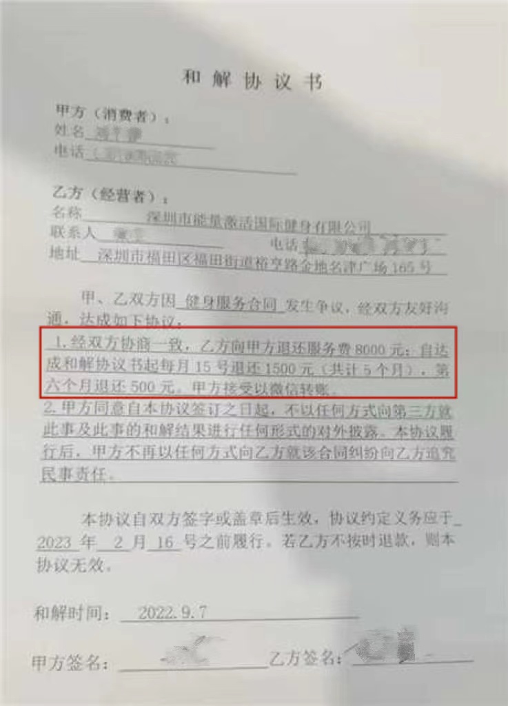 投訴對象:深圳市能量激活國際健身有限公司
