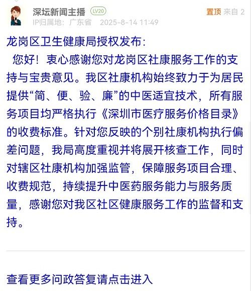 您好!衷心感謝您對龍崗區(qū)社康服務工作的支持與寶貴意見。我區(qū)社康機構始終致力于為居民提供“簡、便、驗、廉”的中醫(yī)適宜技術,所有服務項目均嚴格執(zhí)行《深圳市醫(yī)療服務價格目錄》的收費標準。針對您反映的個別社康機構執(zhí)行偏差問題,我局高度重視并將展開核查工作,同時對轄區(qū)社康機構加強監(jiān)管,保障服務項目合理、收費規(guī)范,持續(xù)提升中醫(yī)藥服務能力與服務質量,感謝您對我區(qū)社區(qū)健康服務工作的監(jiān)督和支持。
