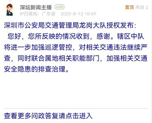 各職能單位如需對網(wǎng)友反映的問題進行回應,可在深圳論壇注冊官方賬號并通過認證,回帖進行回應。